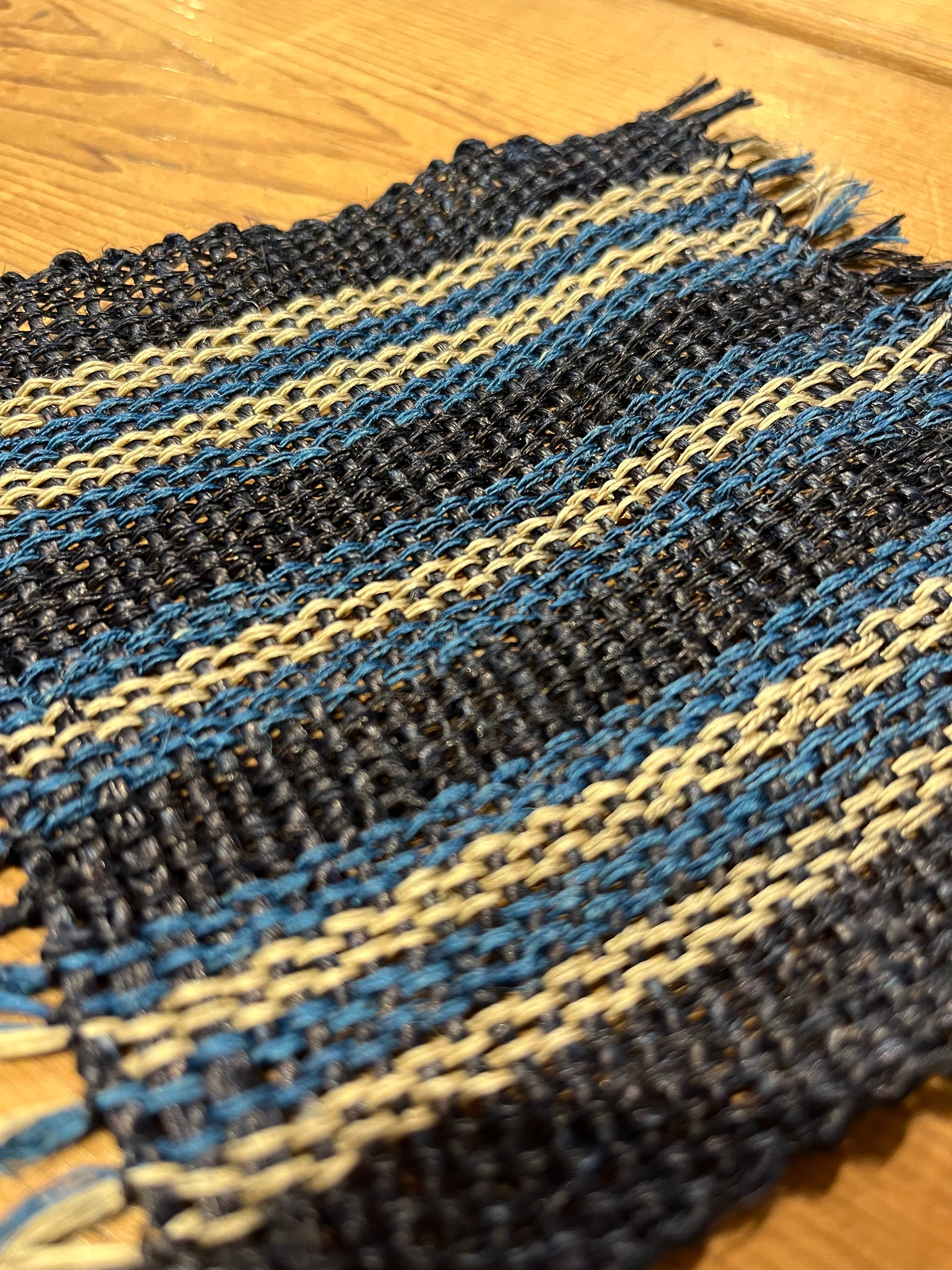 こちらは、国産精麻を原料に、手績みと手織りで丁寧に仕上げた10cm角の作品です。