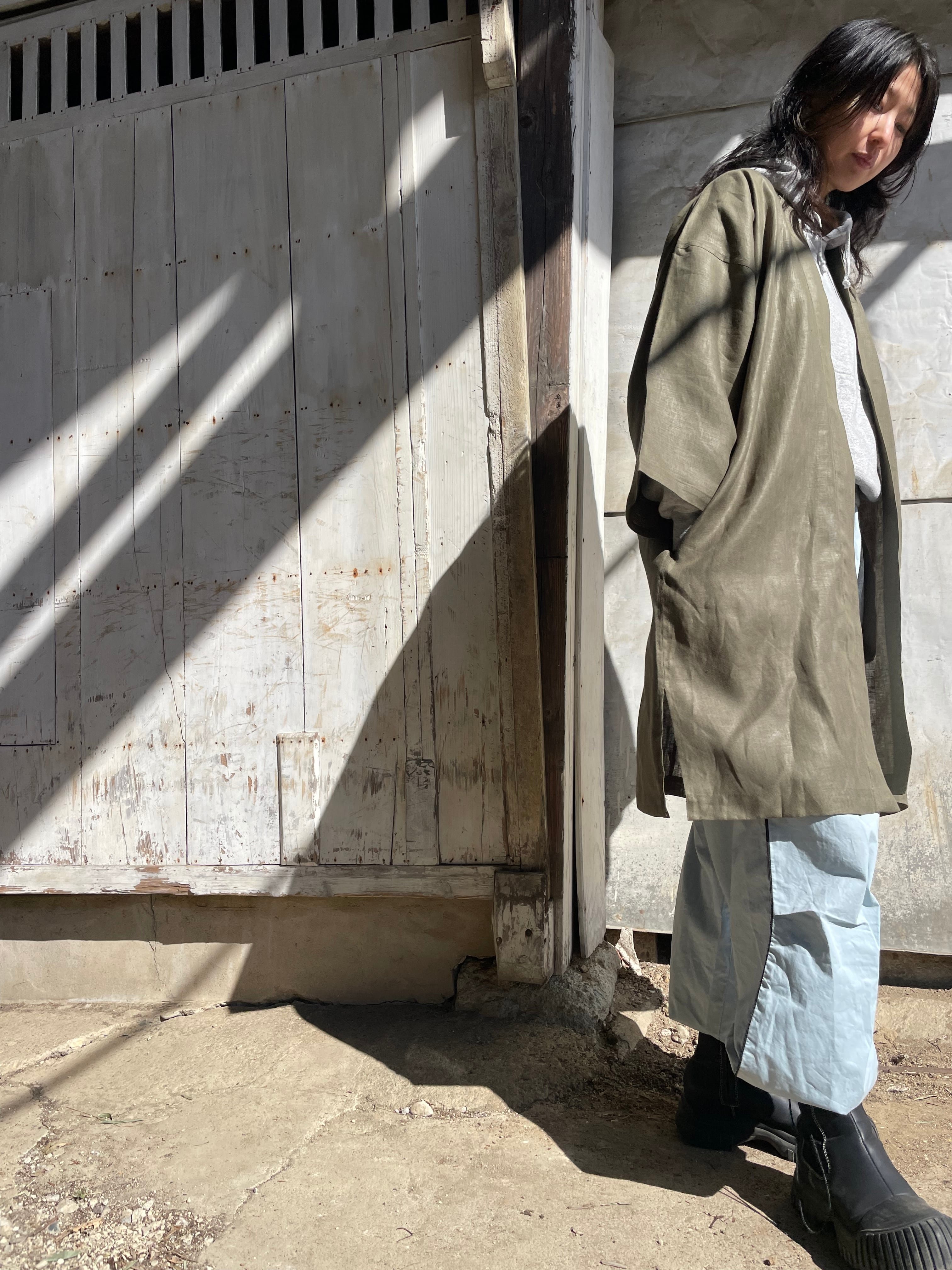 ヘンプ100%の軽やかな羽織は、肌寒い季節や移動時に最適。